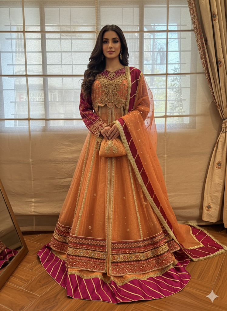 We used a mix of fabric play and color play as requested by the client. This also needed a splash of print and handwork hence added.