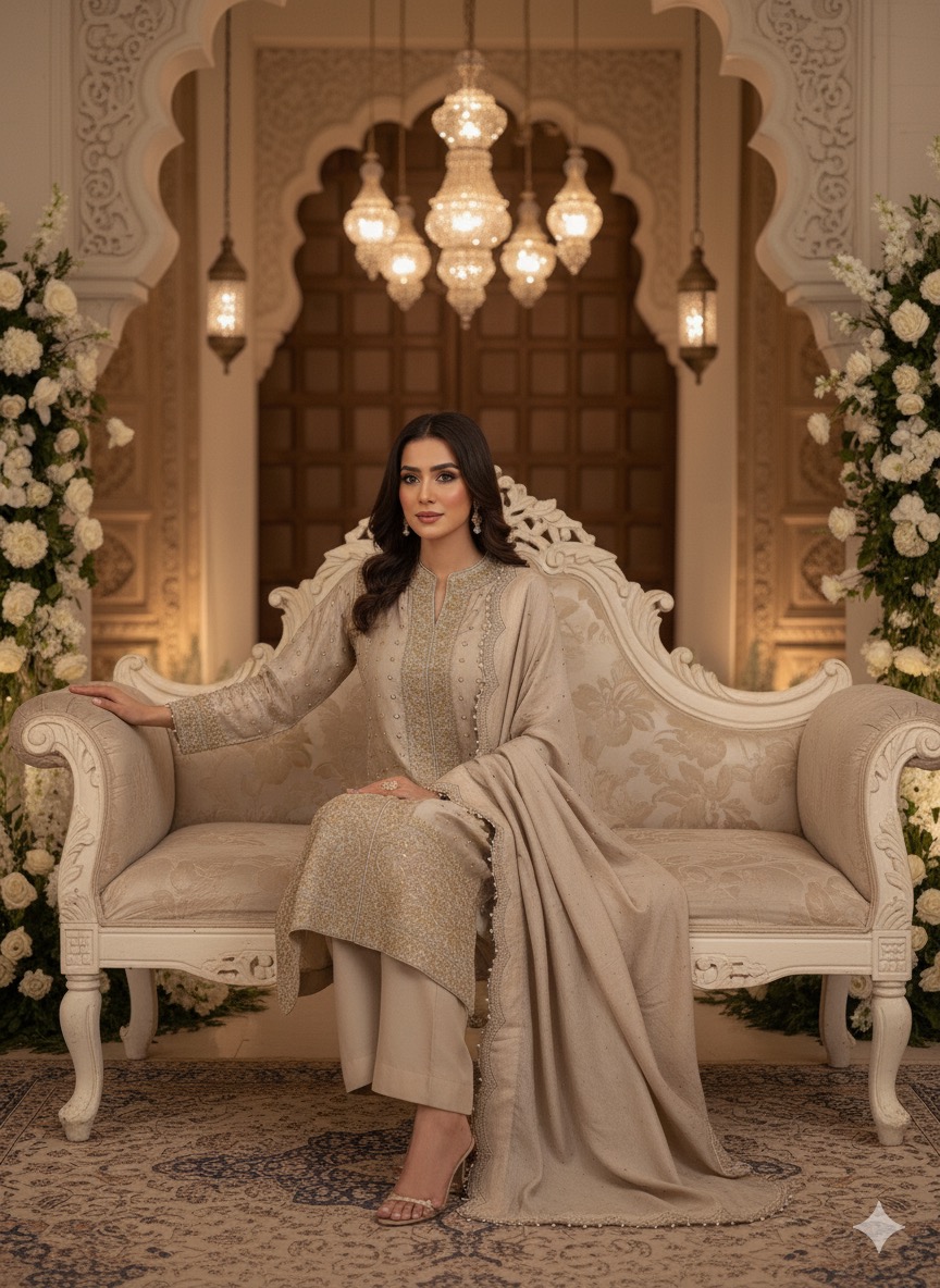 • Hand-Embellishment: Intricate traditional Kora Dabka work.
